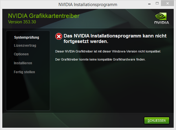 Dieser NVIDIA Grafikteiber ist mit dieser Windows-Version nicht kompatibel.