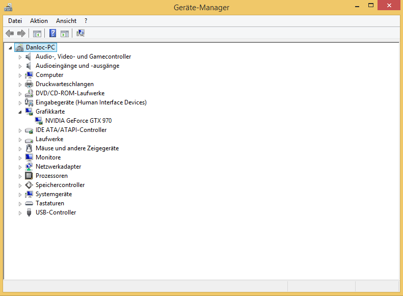 Allerdings wird im Windows Gerätemanager die Grafikkarte richtig erkannt und Treiber Installation sowie Deinstallation über Windows funktionieren einwandfrei. Siehe Screen: