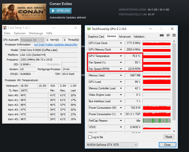 die Temperaturen meiner neuen Grafikkarte sind permanent beim Spielen recht hoch 75 Grad+ (50 Idle ).