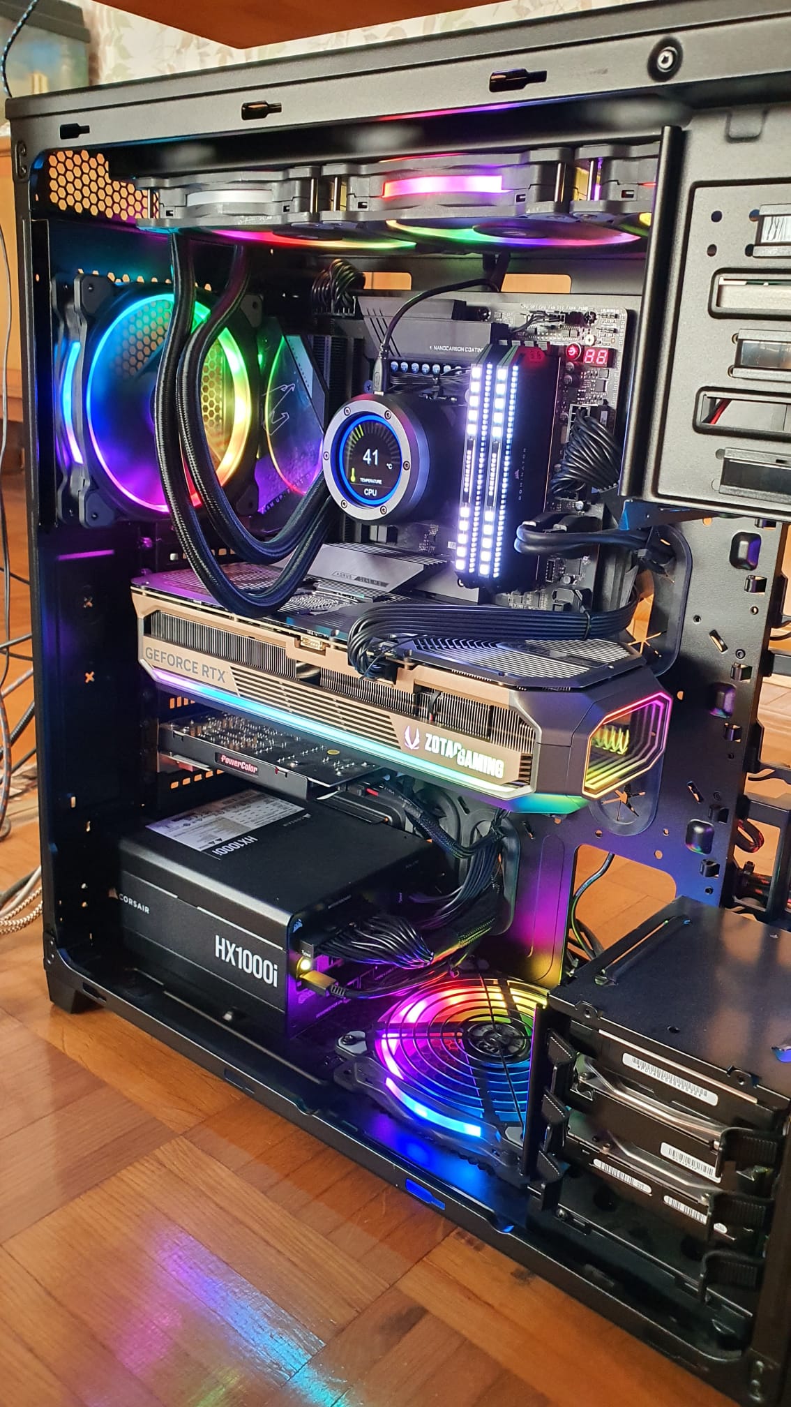 Das man sich eine Karte holt welche knapp 600W Abwärme ins Case abgeben und dann ein Case haben welches dafür nicht geeignet, ist eine andere Sache.