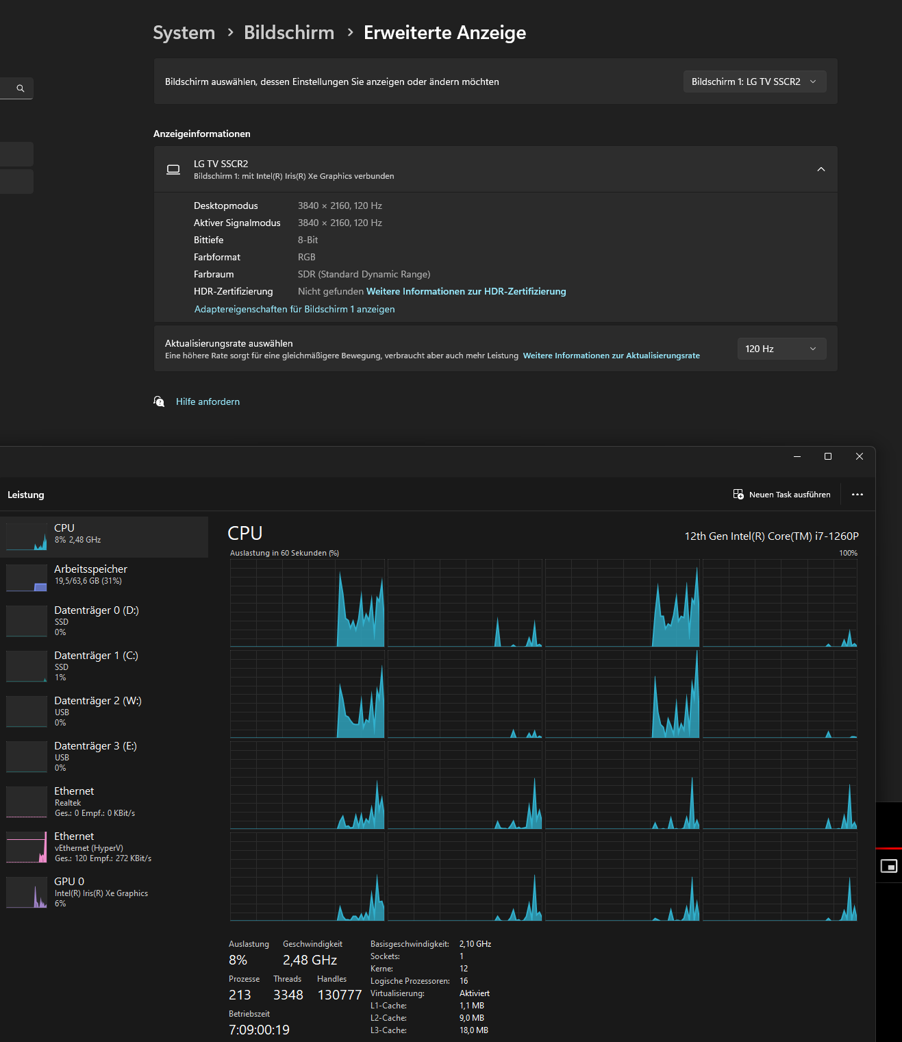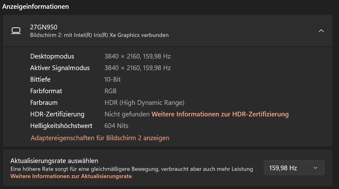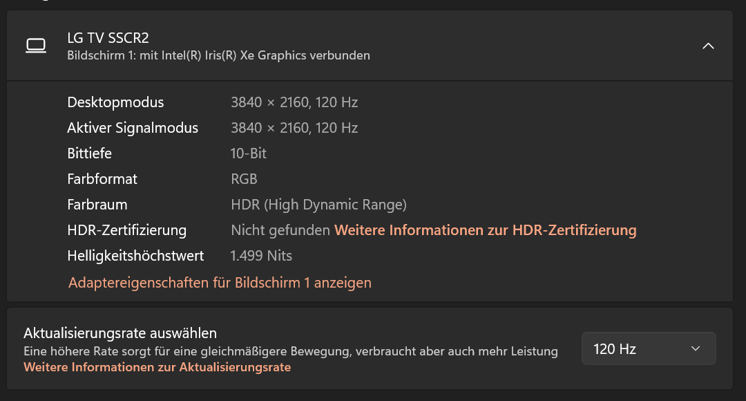 Die CPU laut Intel: DP2.1 UHBR20, HDMI2.1 / Die kann locker 4K 120 Hz über beide Ausgänge.