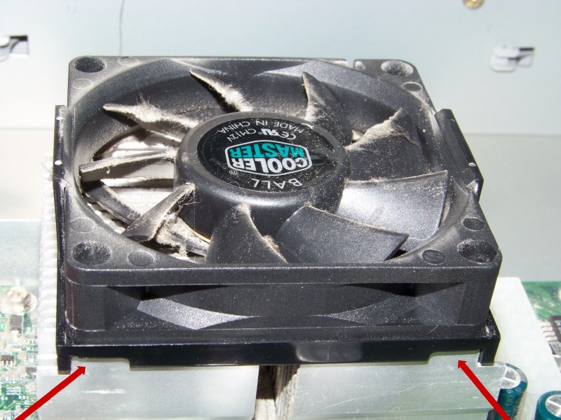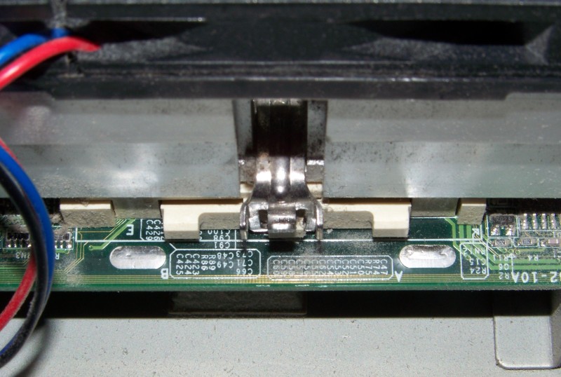 Hab auch scho ne bebilderte Anleitung dazu gefunden (http://www.globalgameport.com/showthread.php?t=1748), da ist die Klammer jedoch 3-teilig..... Bei mir (vergleiche Dateianhang), ist allerdings nur die Mitte der Klammer vorhanden, wenn ich die mit nem Schlitz-Schraubenzieher runter drück, löst dich da garnix.... Die Klammer bewegt sich zwar nach unten, aber nicht zur Seite um den Lüfter lösen zu können. Auch durch gegendrücken oder seitwärtsbewegen des Schraubenziehers tut sich da nix. Bin ich wirklich zu blöd dazu?