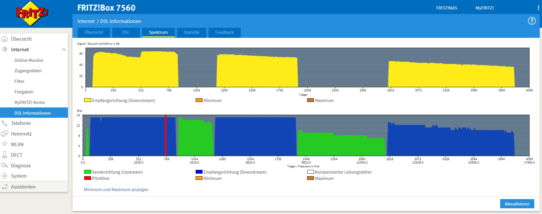Ich bin vor kurzem mit meiner Fritzbox 7560 umgezogen in eine neue Wohnung (Einfamilienhaus) und habe bei 1&1 DSL 250 gebucht. Warum auch immer kommen in meiner Fritzbox davon aber dauerhaft nur ~128-134Mbit (Download) an. Laut 1&1 müssten das MINDESTENS 175Mbit sein.