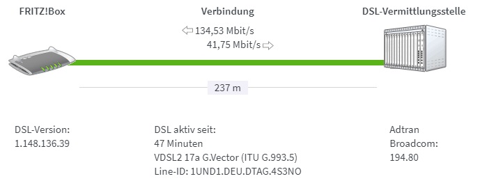 - Telekomtechniker hat die Dose heute getauscht und durchgemessen -> 275MBit kommen in der Dose in meinem Wohnzimmer an, bis zur Dose passt also alles