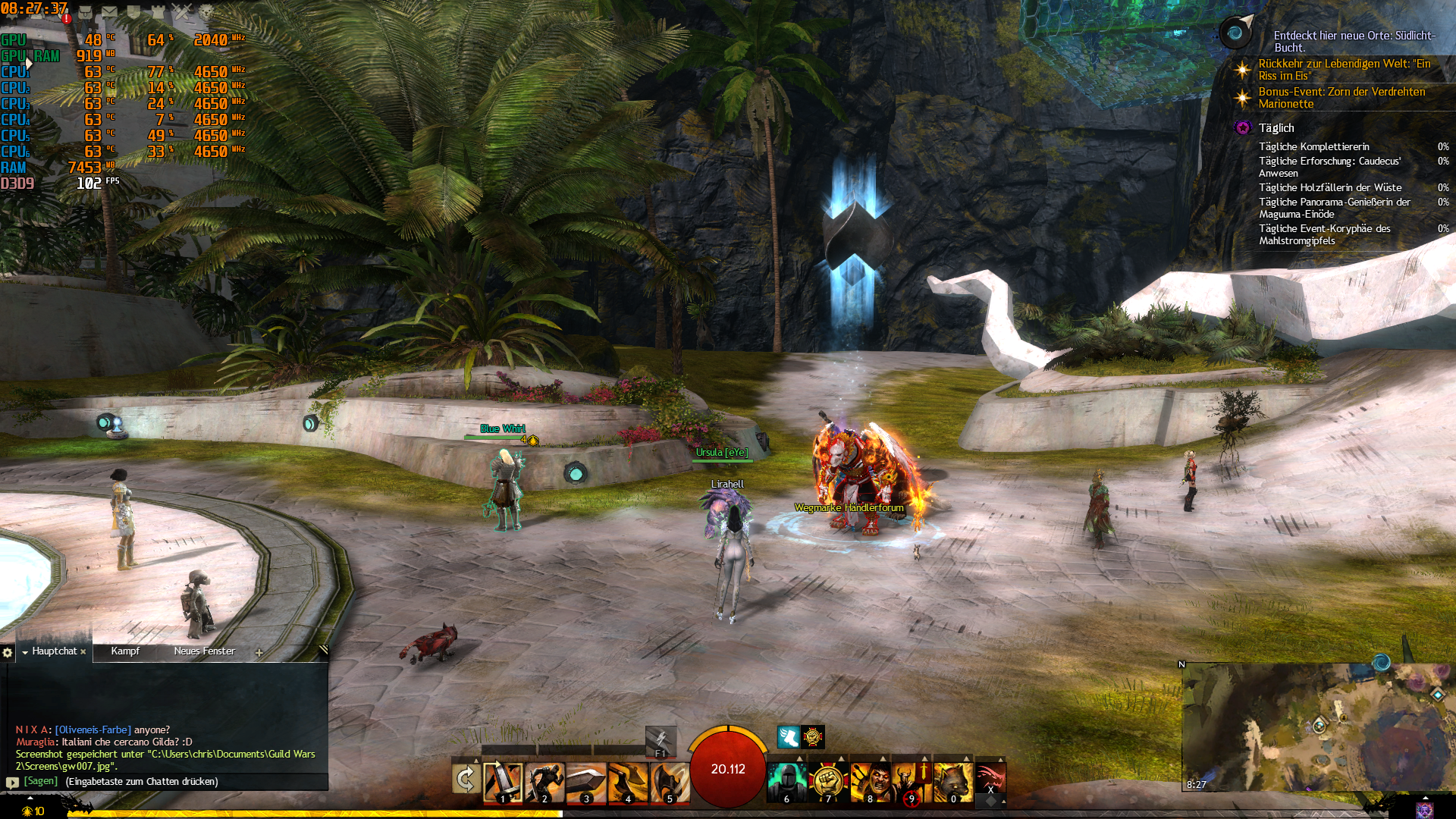 Ich hab mir einige Videos angeschaut auf Youtube, aber es ist wirklich nicht möglich Riva Tuner bei Spellforce 3 zum laufen zu bekommen, aber ich habe stattdessen einige Screens von Guild Wars 2 gemacht, Das ist ja auch nicht so gut optimiert. Ich hoffe jetzt hab ich die richtigen Komponenten im Riva Tuner eingeblendet? In Löwenstein ist die schlechteste Performance vom ganzen Game, andere Spieler haben da so 30Fps, ich denke mit meinem System ist alles gut wenn ich nur ab und zu auf 50 droppe. Ich muss auch sagen das ich beim umschauen leichte Ruckler bekomme, nur ist das leider schlecht zu sagen ob das am System oder dem Server, oder meiner Internetverbindung liegt, da ich in einem Dorf wohne ist die leider nicht so toll und bricht öfters mal ab. Das mit den Rucklern ist von Map zu Map unterschiedlich und auch nicht immer, ich denke das liegt leider an meinem Internet.