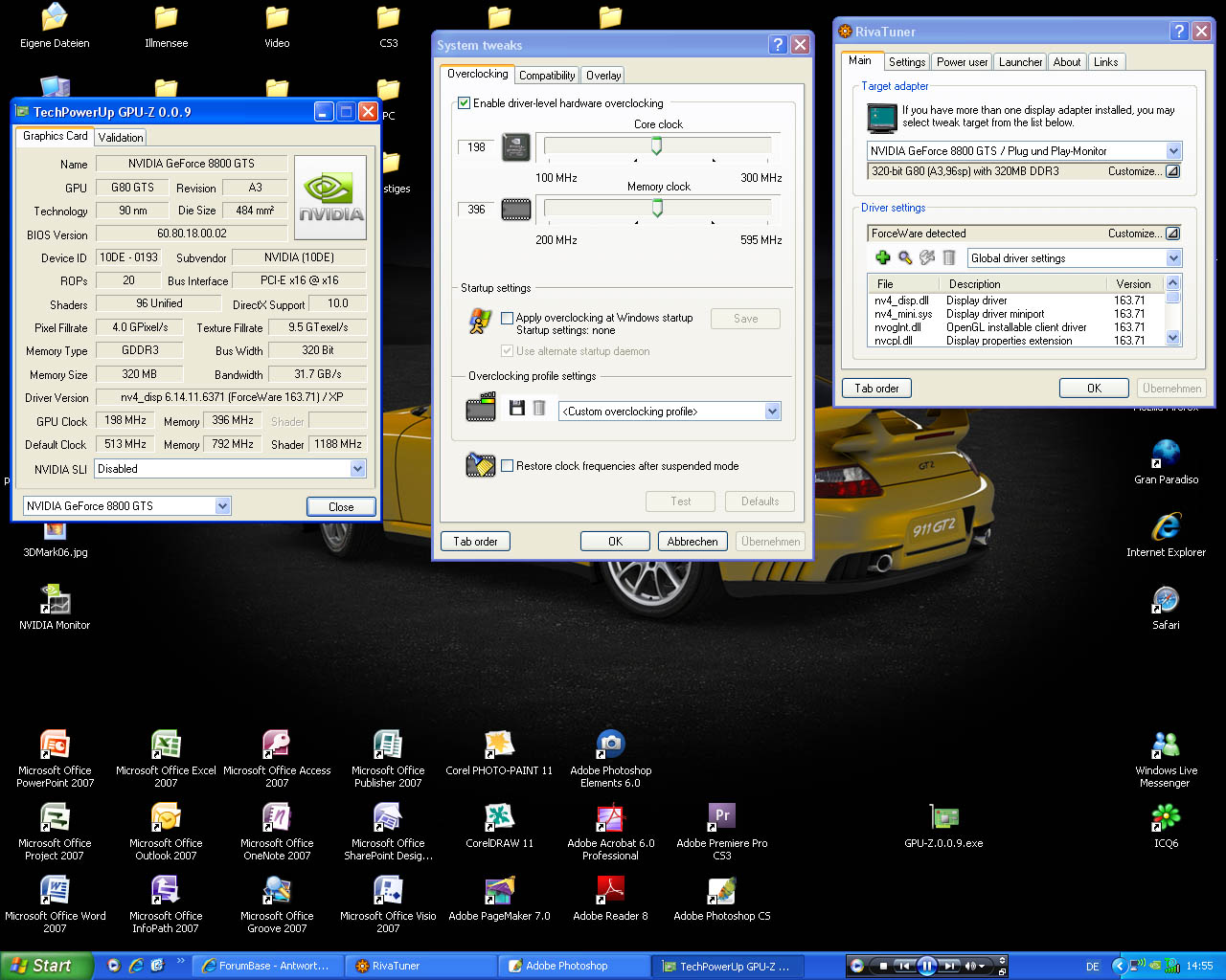 Die CPU tacketet gleich mit 2,94Ghz.......nur GPU-Z zeigt an das meine GTS viel zu geringen Tacktraten hat