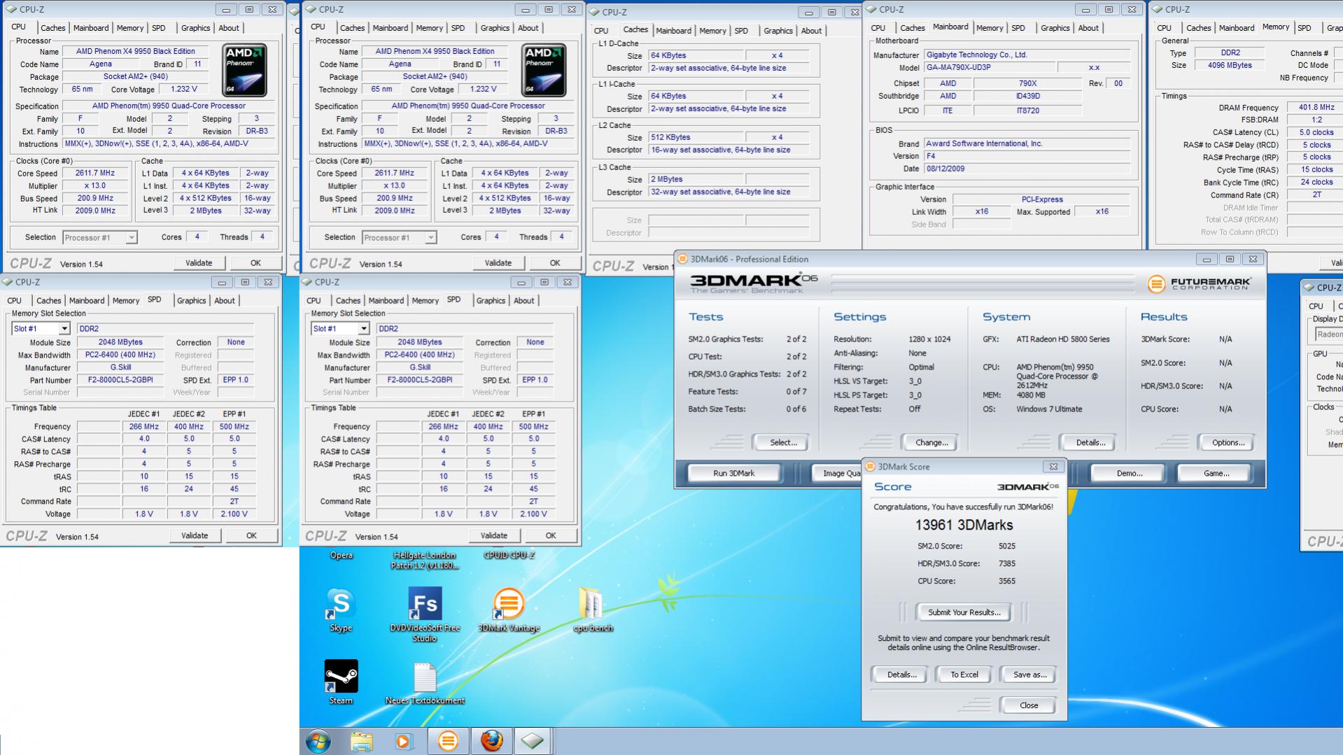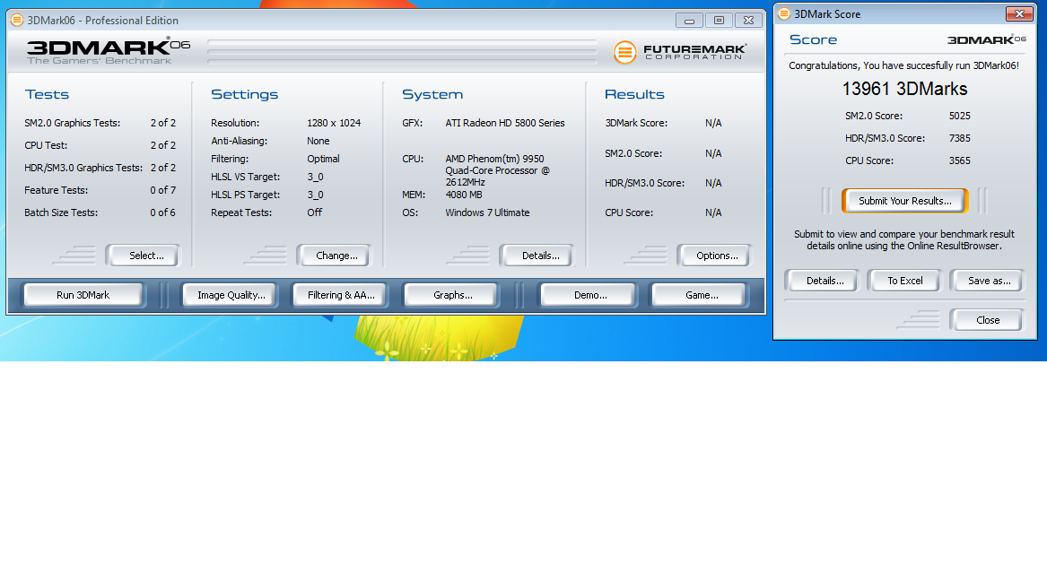 ich habe folgendes problem. ich bekomme mit meinem rechner (9950x4 BE,hd5870,GA-MA790X-UD3P,G.Skill DIMM Kit 4GB PC2-8000U CL5-5-5-15 (DDR2-1000)) die miserabelsten bench ergebnisse (3dmark06 ca.14000) bei den anderen ist es auch weit unter dem was man erwarten kann. betriebssystem ist win7 x64. ist nichts übertaktet und alle treiber sind auch vorhanden. hat vielleicht jemand ne idee woran des liegen könnte?