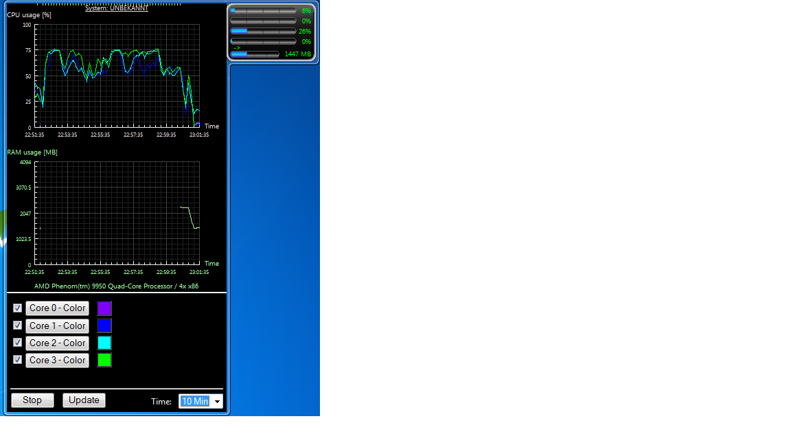 Kleine Anleitung im Screen,stell die Zeit mal auf 10 min ein und Spiel mal deine Spiele für 6-7min und schau mal nach welche Kerne bei 100% sind und mach dann davon mal ein Screen.Vor und nach dem Spiel sollte noch zu sehen sein.
