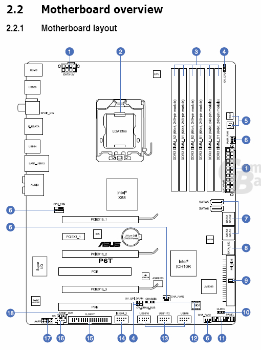 (Intel Chipsatz X58, 2 PCI, 1 PCI-E x1, 3 PCI-E x16, 6 DDR3 DIMM, Audio, Gigabit LAN, IEEE-1394)