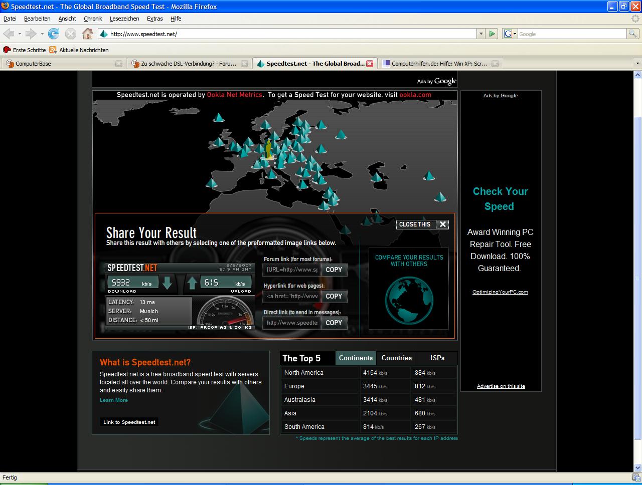 meines erachtens ist das zu wenig für dsl 1000. ich habe gestern und heute mehrere tests gemacht und dabei beobachtet das manchmal dsl 768 angezeigt wird und dann wieder dsl 1000. warum bleibt das nicht konstant? laut telekom die ich gestern noch angerufen habe muß sich die leitung erst einstellen. das sollte bis gestern mitternacht geschehen. heute mittag hatte ich aber trotz allem wieder die anzeige mit 768. vorhin gerade dann wieder 1000. ist das normal? gibt es eine möglichkeit das ich meine geschwindigkeit irgendwie erhöhen kann so das ich anstatt der 847 k/bits dann auf knappe 1000 komme?