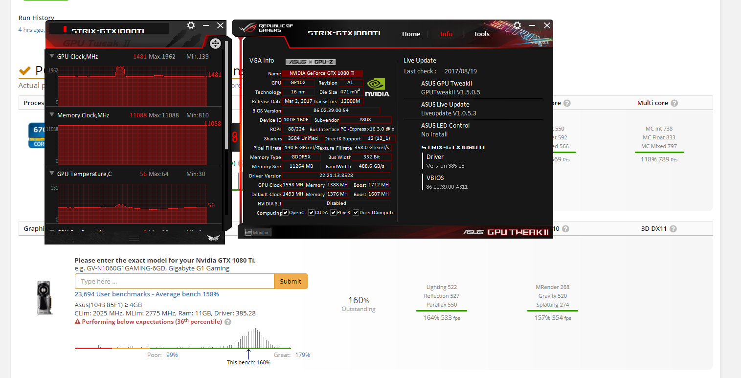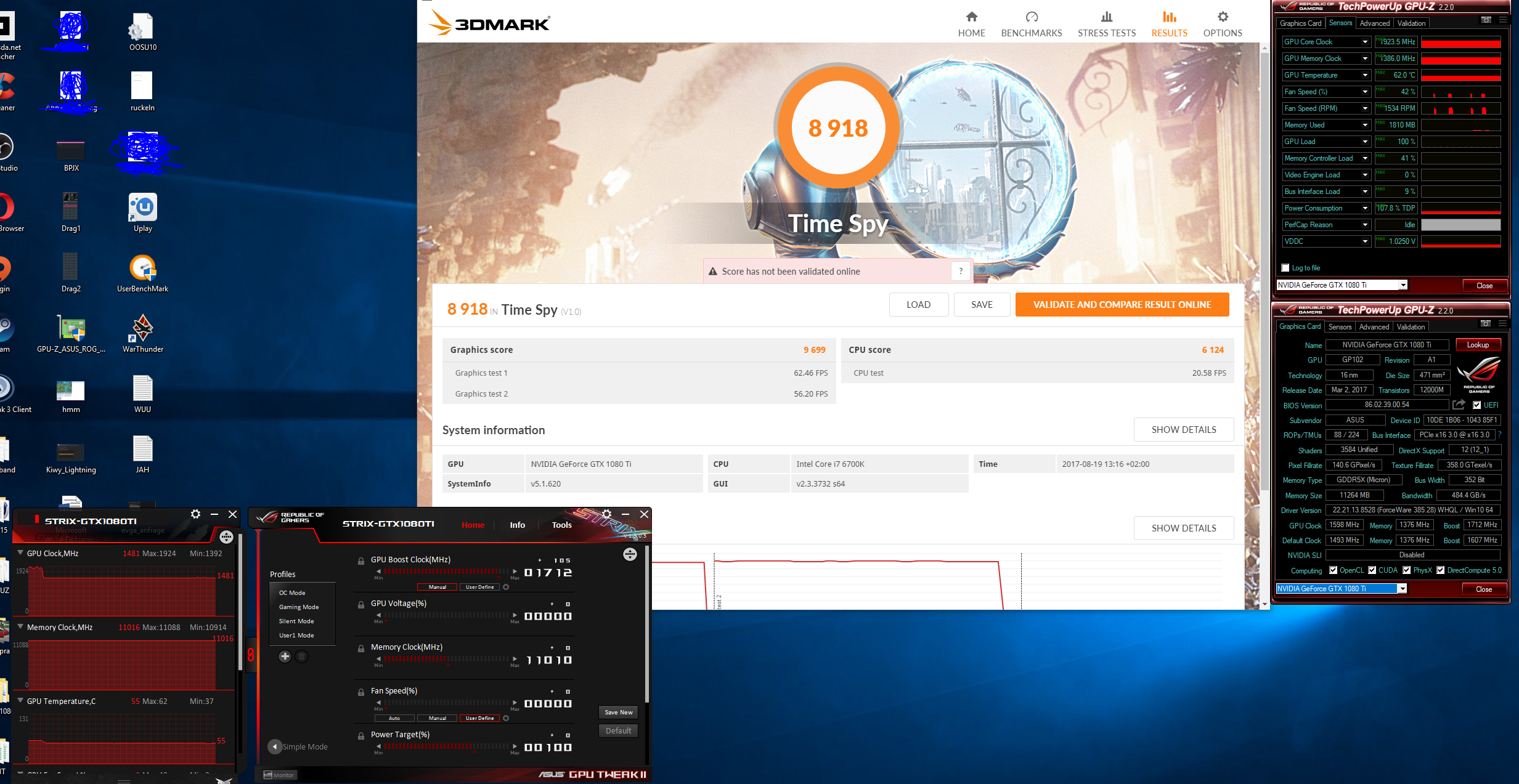 Gefühlt habe ich in meinen Spielen kaum mehr FPS als mit der normalen 1080 auch. Die GPU Auslastung beträgt immer schön saubere 98-100%. Die CPU läuft mit 4.7Ghz derzeit.