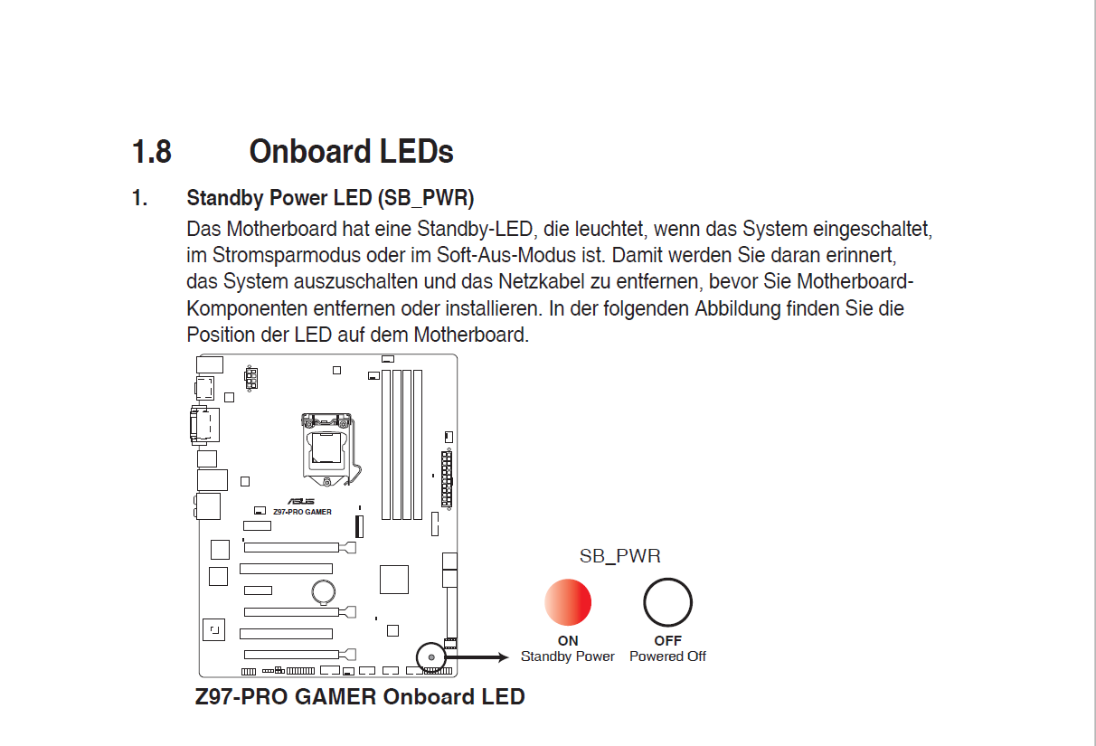 ... siehe Bild:leuchtet das Mainboard auf der Rückseite immer rot