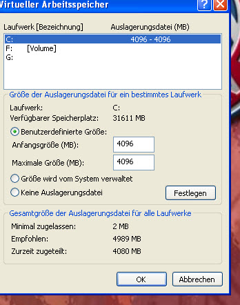 2. Lass die Auslagerungsdatei so eingestellt, wie sie ist - du wirst sowieso keinen Unterschied merken... wieso müssen Leute immer an irgendwelchen Einstellungen rumschrauben nur weil sie glauben es könnte was bringen - ich würde z.B. gerne mal wissen wieviele unter Vista manuell die Prozessoranzahl festgelegt haben... und dann wundern sie sich warum beim Wechsel von DualCore auf QuadCore plötzlich nur 2 Kerne genutzt werden...