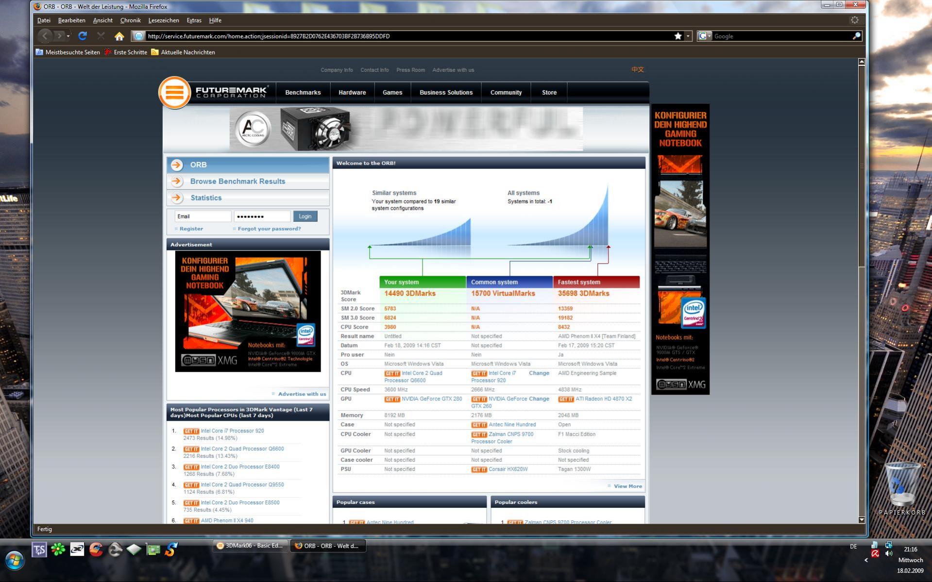 ...für einen Q6600 mit 3,6Ghz ist die erreichte Punktzahl von knapp 4000 sehr schlecht. Ich habe unter Vista64 bei 3Ghz 4150 Punkte.
