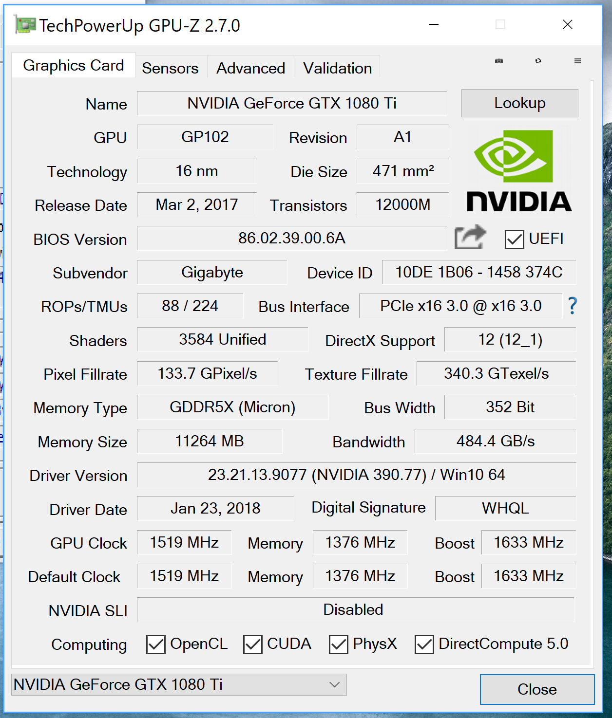 Nvidia Gforce GTX1080 TI