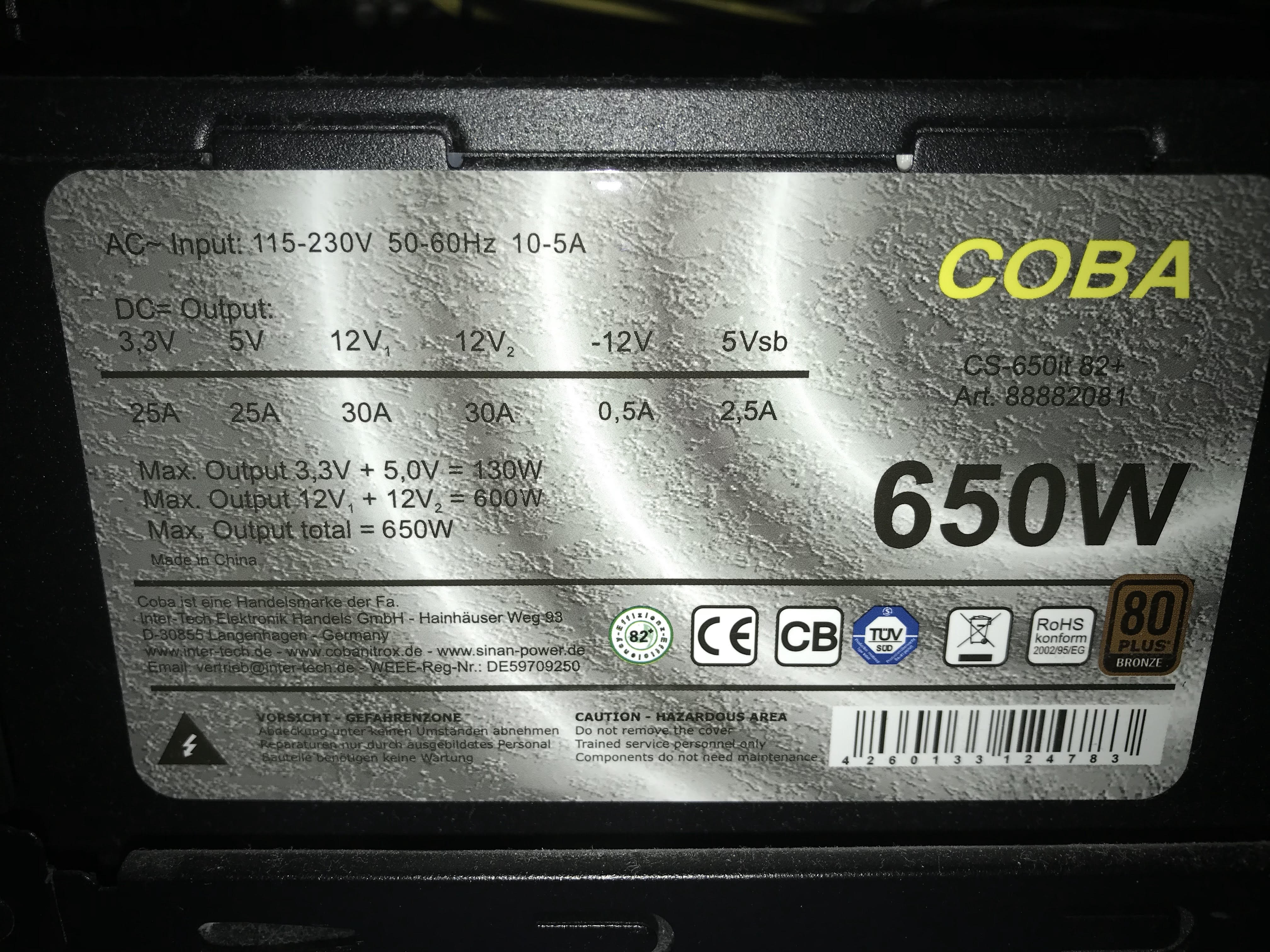 Netzteil: 650Watt Power Gaming Netzteil (80+)