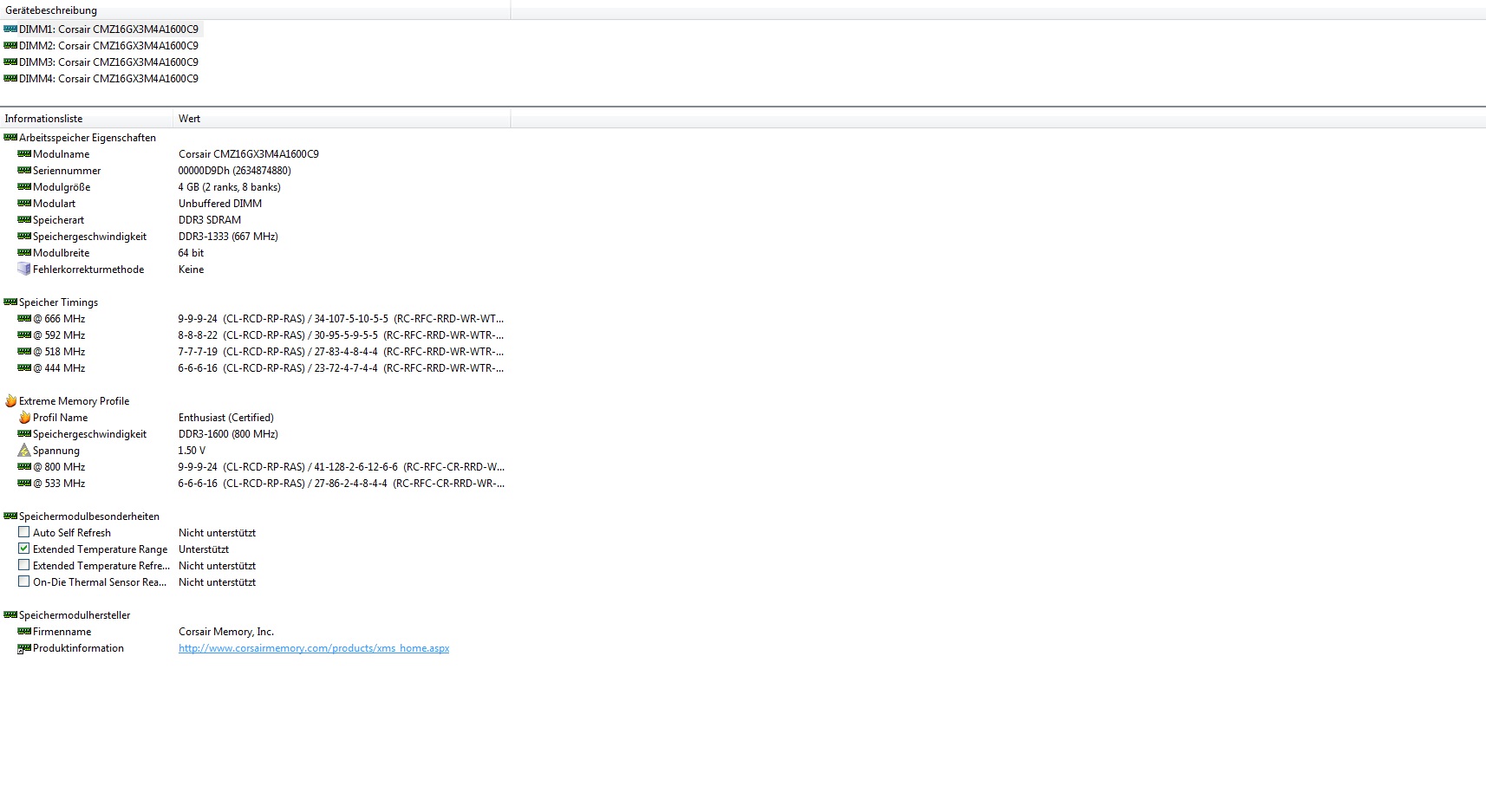 Auch im Bios werden in allen 4 Bänken RAM mit je 4 GB erkannt, nur beim Starten stehen dann 8 GB da.