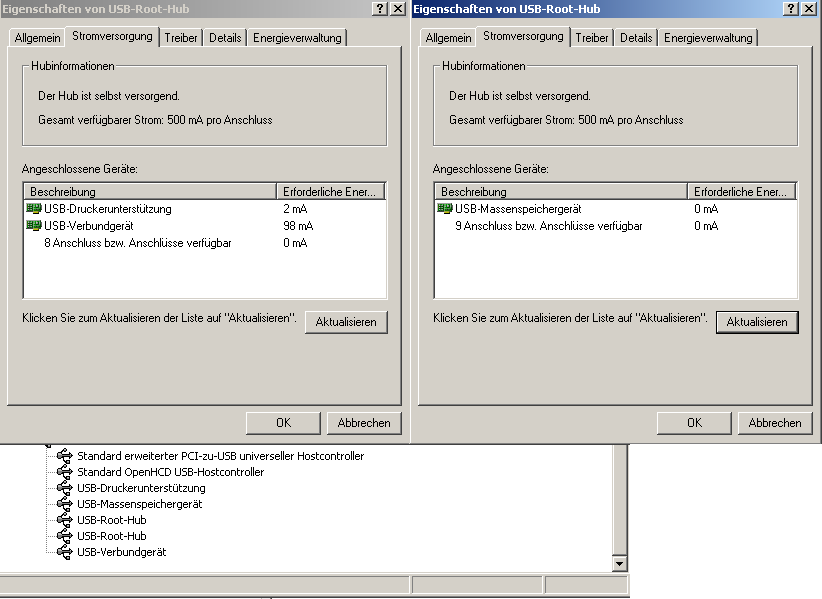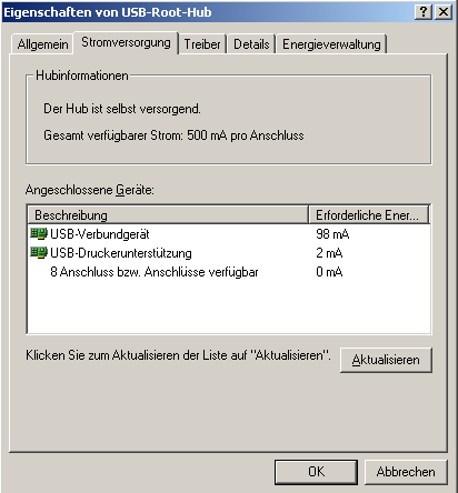 Hab ich zuwenig Energie am USB-Anschluss, oder wo kann der Hund sonst begraben sein?