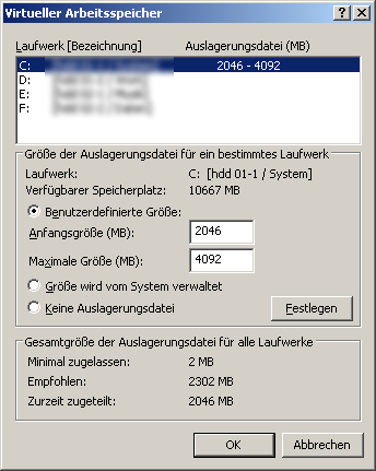seit einiger Zeit stört mich eine Kleinigkeit sobald ich mal den Taskmanager öffnen muss. Dort steht ganz unten immer etwas von zugesicherter Speicher und dieser Wert ist immer fast genauso groß wie mein gesamter Arbeitsspeicher. Wenn ich danach aber unter physikalischer Arbeitsspeicher schaue, sehe ich das noch nicht einmal die Hälfte belegt ist. Hier läuft doch sicherlich irgendetwas falsch. Eigentlich müsste doch der wesentlich schnellere Arbeitsspeicher voll sein und nicht umgekehrt. Muss ich vielleicht den virtuellen Speicher verkleinern? Oder den virtuellen Speicher auf eine feste Größe einstellen?