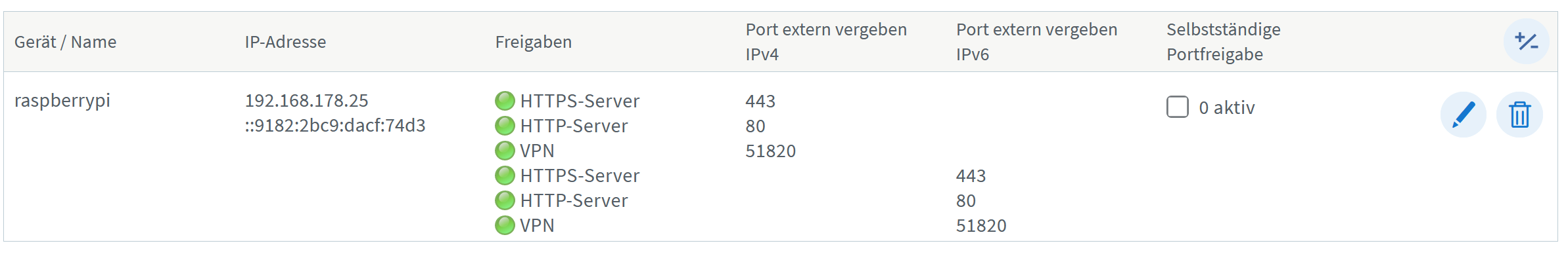 Der dritte Punkt behob alle nachfolgenden Probleme, außer die VPN-Verbindung meines MacBooks. Ich nutze dafür Wireguard, der direkt auf meinem Raspberry läuft. Die native Unterstützung von FritzBox seit v7.50 nutze ich noch nicht.