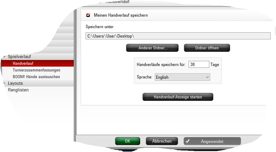 funktiniert auch super, aber auch nur solange bis ich nicht auf die idee komme und kurz bevor das programm sich einschaltet in der pokersoftware den ordner ändere wo die hände gespeichert werden.