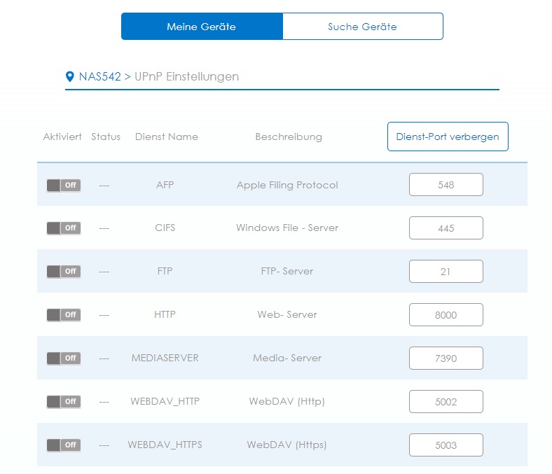 Rein interessehalber (bzw. bzgl. Deiner Frage nach Port-Einstellungen)... bitte zeig' nochmal 'nen Screenshot der Diensteübersicht vom NAS, wie in #15.