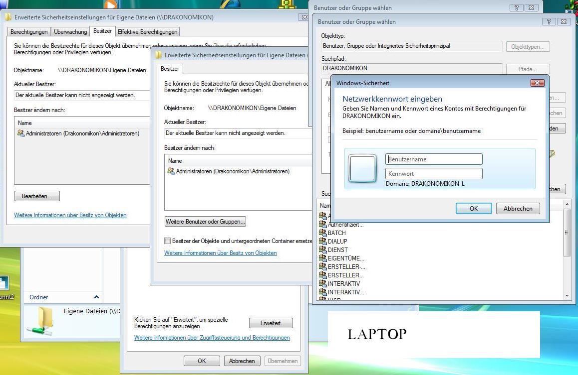Ich möchte eine Partition vom Haupt-Rechner für meinen Laptop freigeben. Aufm Laptop wird die Freigabe zwar angezeigt, aber ich habe kein Zugriff drauf.