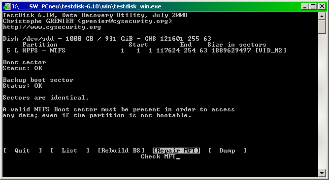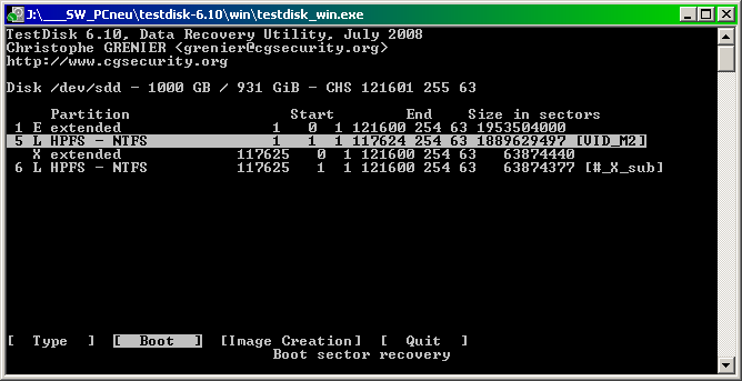 Der Einsatz von TestDisk brachte folgende Ergebnisse: