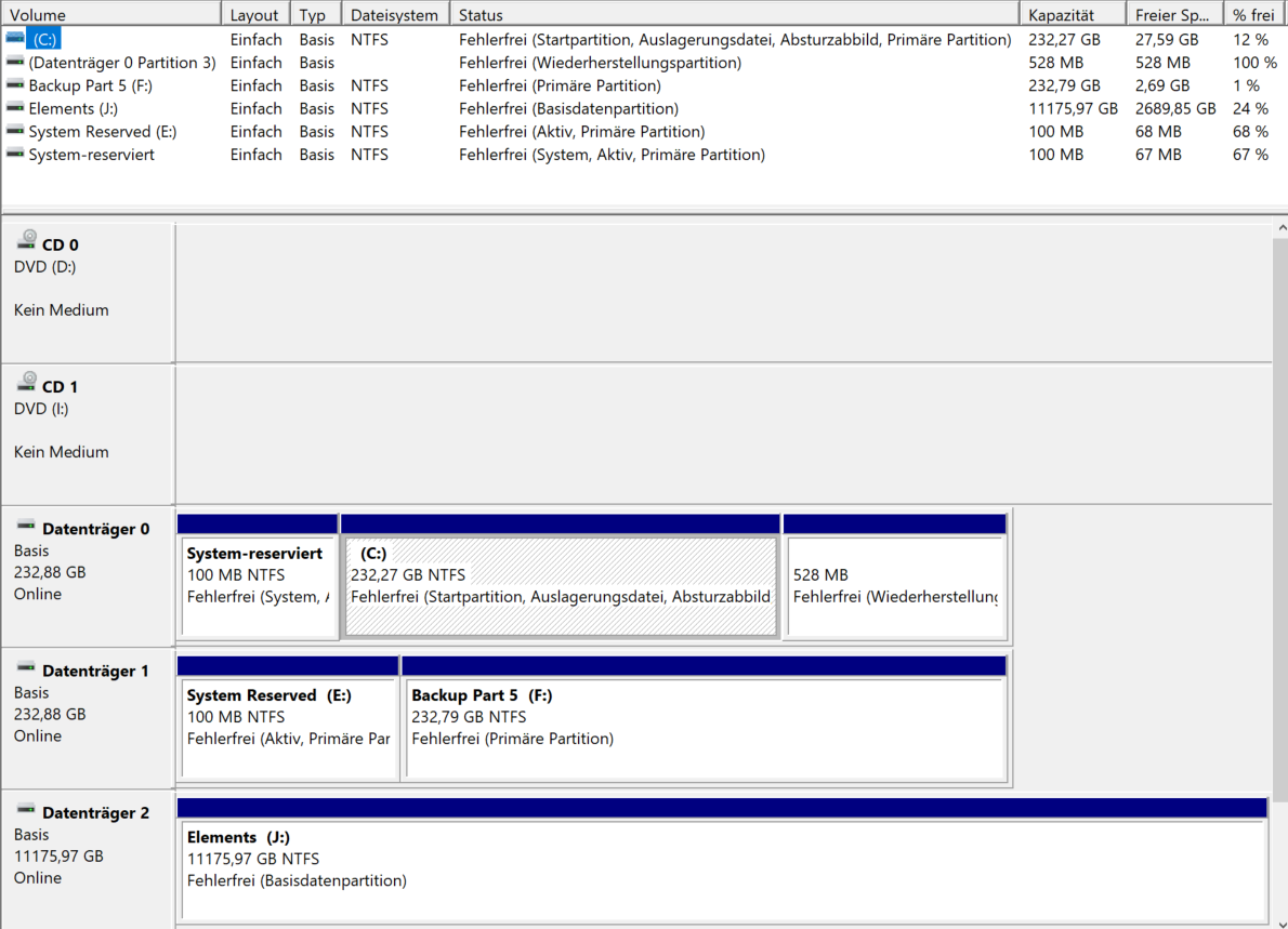 Ansonsten: Was sagt denn die Datenträgerverwaltung zu diesem ominösen Laufwerk J?​