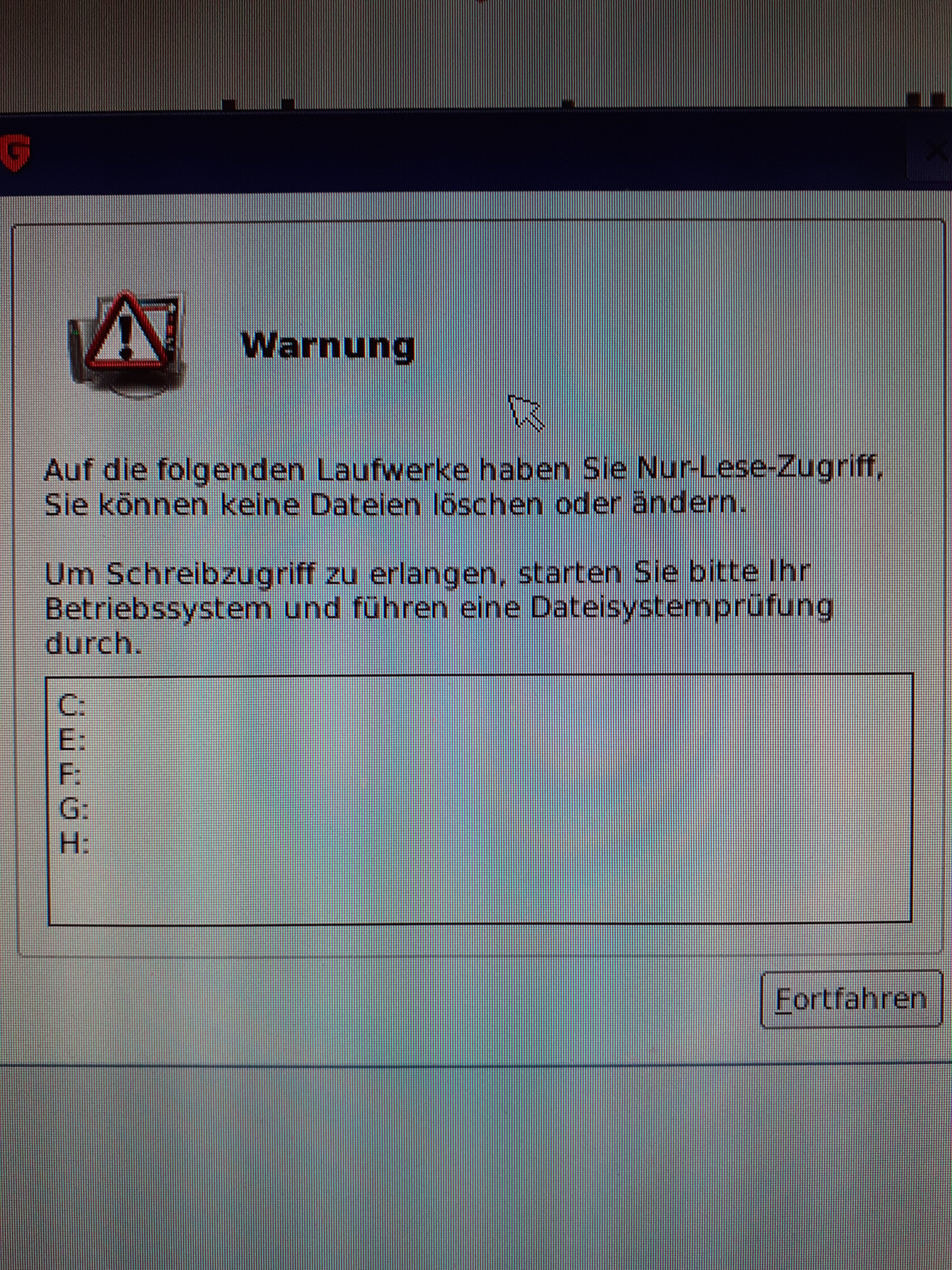 - Vollzugriff auf die Festplatte überfrüfen (ist gegeben)