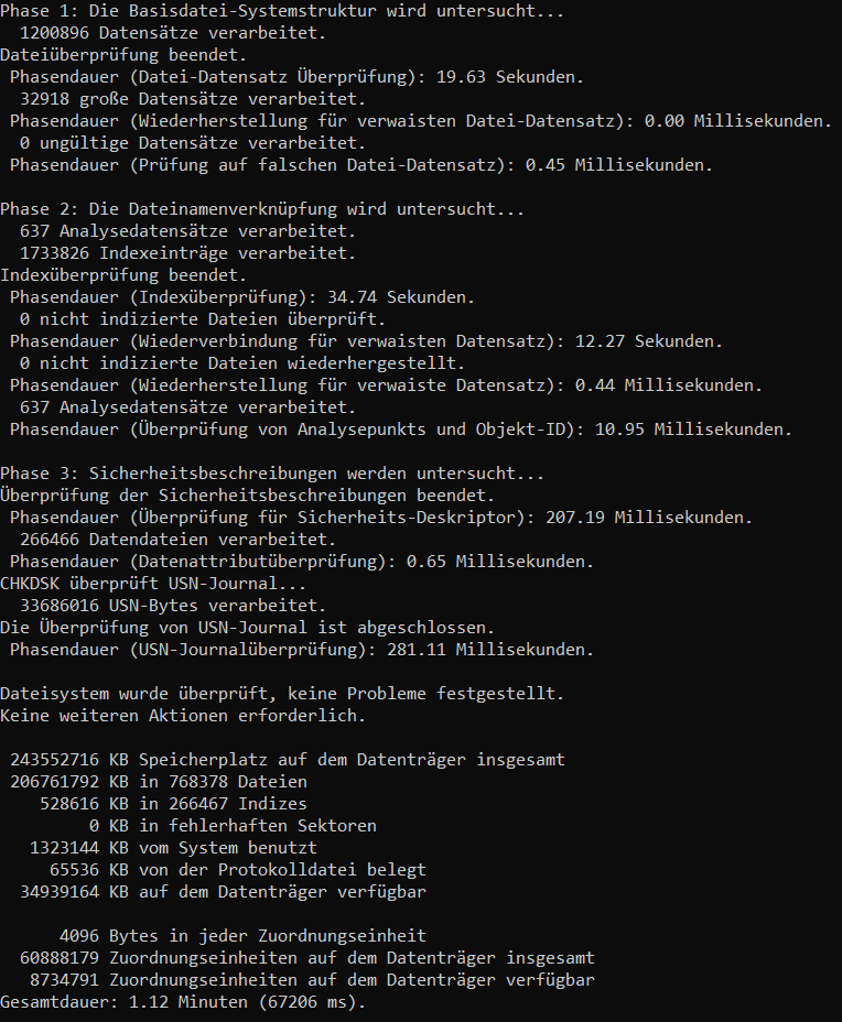- chkdsk (wurde nichts zum reparieren gefunden)
