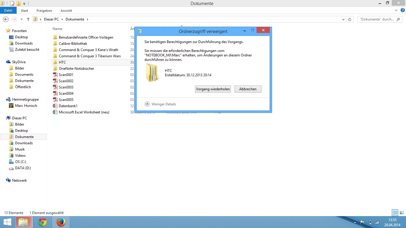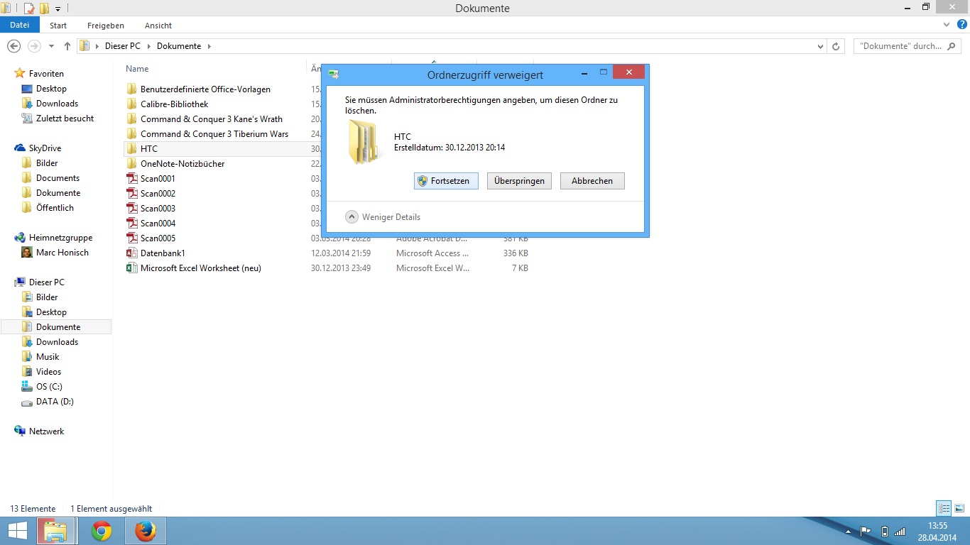 ich bin am verzeifeln. Ich möchte einen Ordner im löschen, allerdings lässt mich win8 nicht. Es erscheint immer wieder die beigefügte Meldung.