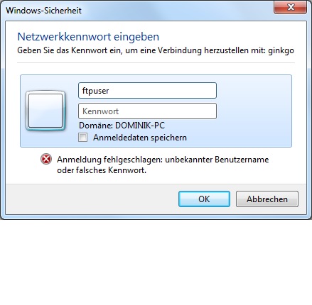 Seit heute fragt er mich nach einem Benutzername und Passwort. Ich habe im Benutzername "ftpuser" eingegeben, im Passwort das Passwort meiner Fritzbox. Leider geht das ganze nicht. Ich bleibe im Feld "Netzwerkkennwort". Sonst ist das Feld "Netzwerkkennwort" nie aufgegangen und ich konnte immer gleich auf meinen Router und das NAS zugreifen.
