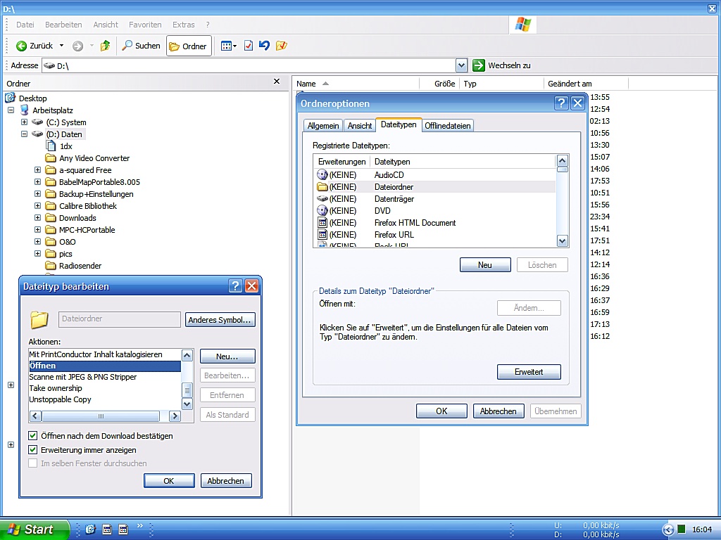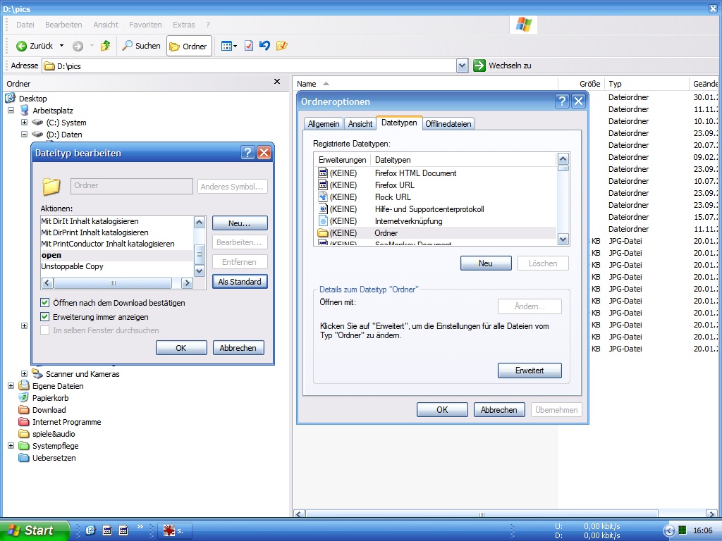 In den Ordneroptionen schaute ich dann nach, ob Ordner und Verzeichnisse plötzlich nicht mehr als oberste Standardpriorität "Öffnen" eingestellt haben. Und tatsächlich - es war dort "Besitz übernehmen" als Standardreaktion eingestellt! Hä? fragte ich mich, wieso das, hab ich doch gar nicht eingestellt? Ich stellte "Öffnen" wieder als Standard ein. Brachte aber nichts. Stattdessen poppt jetzt bei dem Versuch, bei einem Ordner per Rechtsklick "Besitz übernehmen" auszuführen, die Eingabeaufforderung auf mit der Aufforderung "Sind Sie sicher (J/N)?" Egal ob man dann J oder N eingibt - wenn man dasselbe noch mal versucht, fragt die Eingabeaufforderung wieder genau dasselbe.