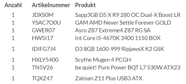 Im Anhang meine Komponenten, die ich aktuell einsetze. Die Grafikkarte habe ich vor kurzem erst gegen eine 1070 getauscht. Muss ich dann eigentlich eine neue Windows 10 Lizenz kaufen, wenn ich die Festplatte tausche? Das BIOS vom Mainboard muss ich sicherlich updaten, aber das ist kein Problem. Macht die Zusammenstellung eurer Meinung nach Sinn?