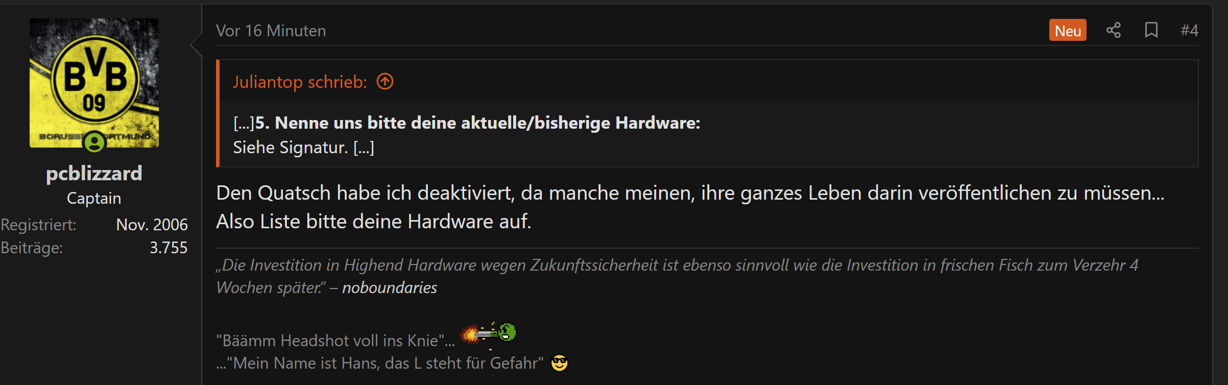 5. Nenne uns bitte deine aktuelle/bisherige Hardware: