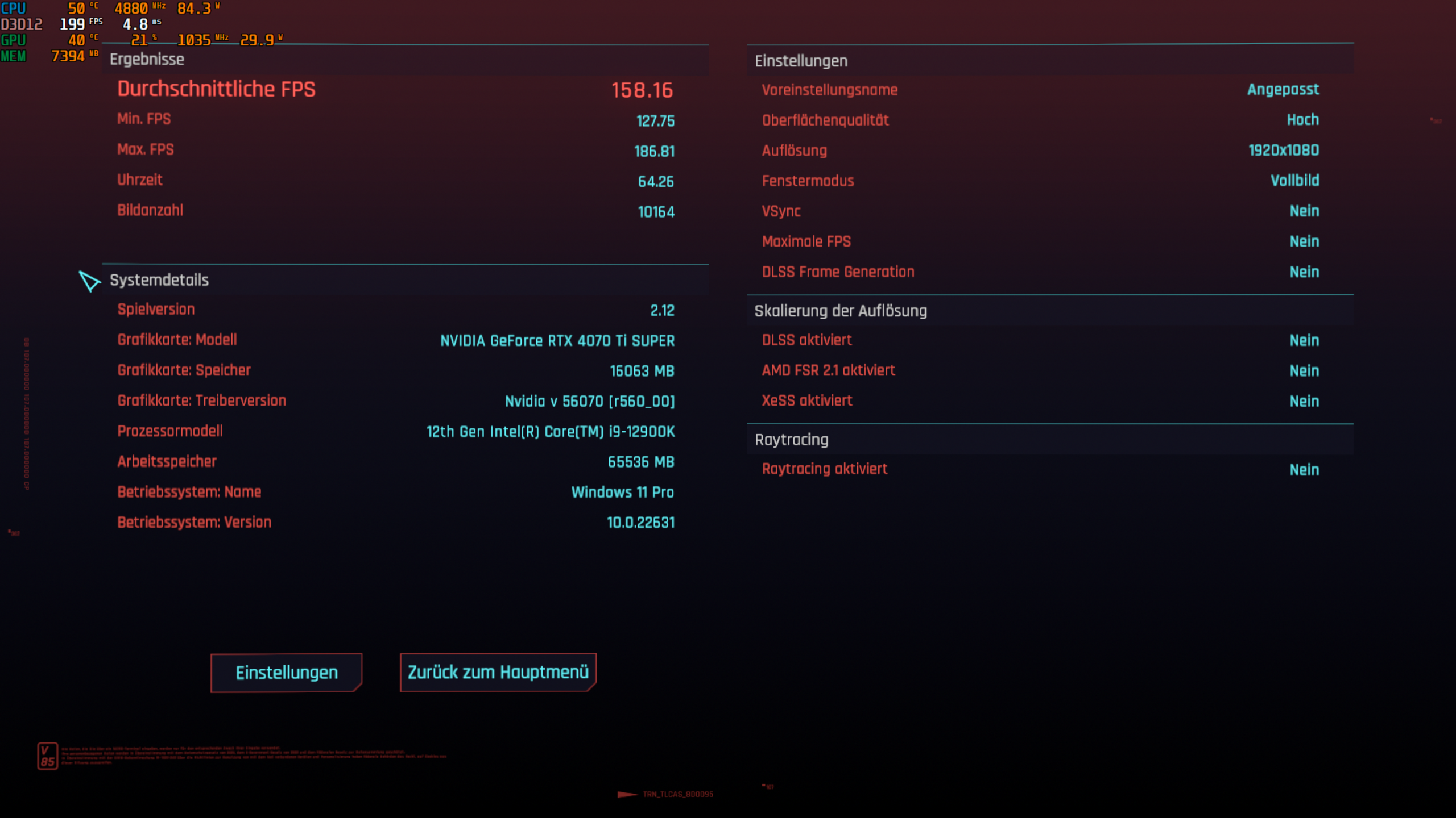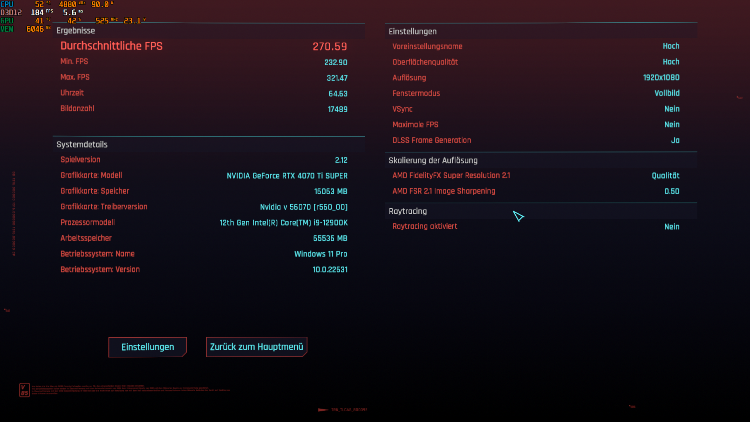 Also noch SEHR SEHR viel Puffer übrig, um die settings zu reduzieren. Zudem gibt es ja auch noch Upscaling und Frame Generation.