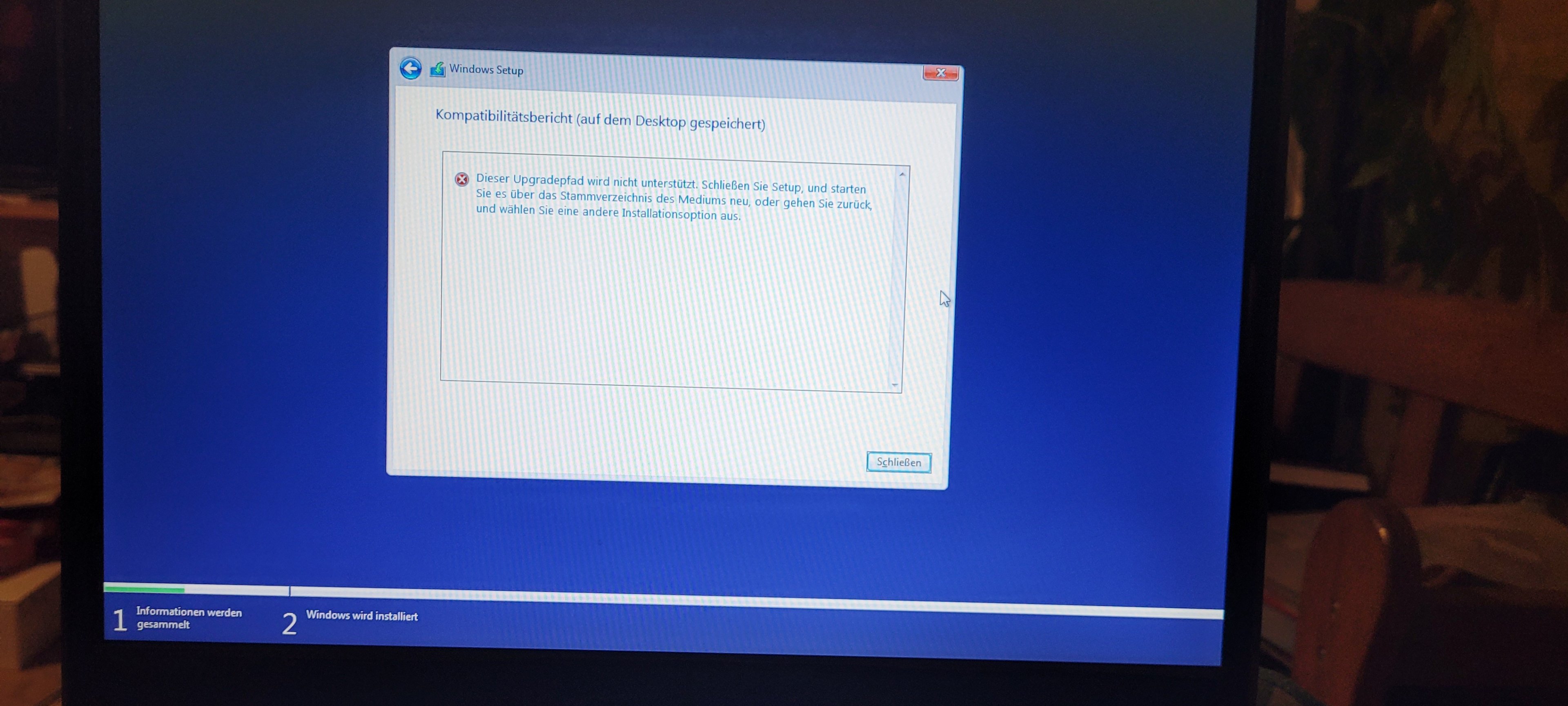Nun wollte ich doch wieder Win 10 installieren, aber es klappt nicht mehr.