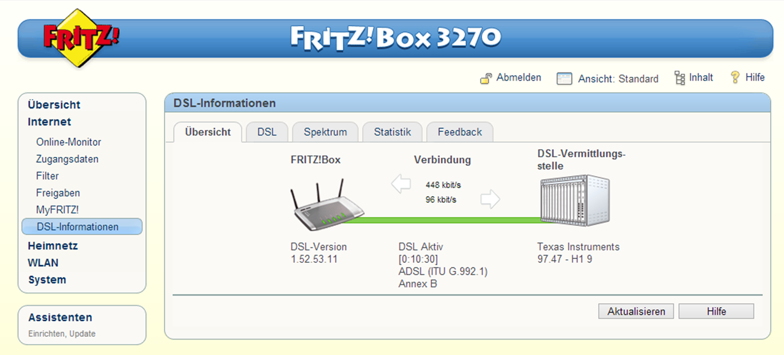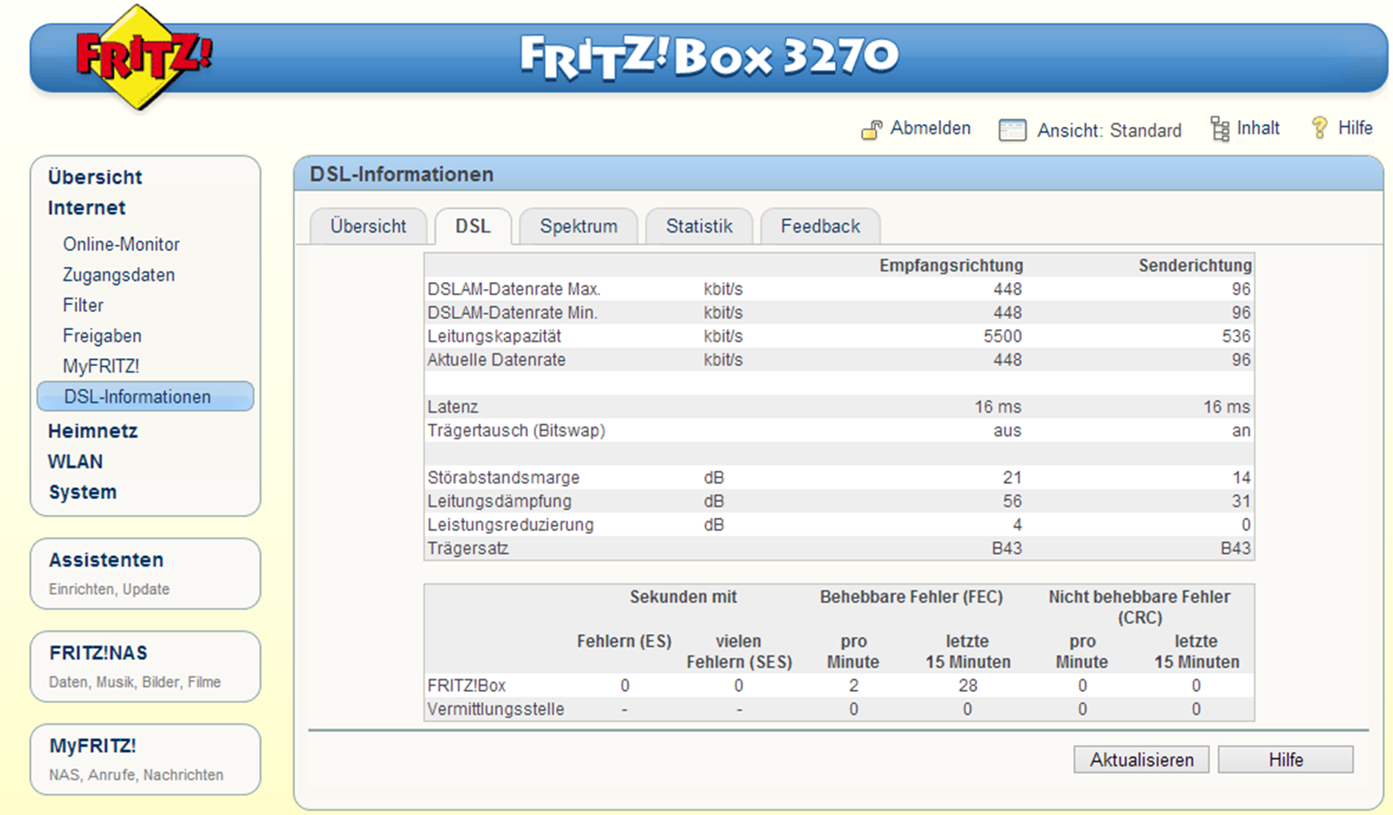 - fixed vor 2 Jahren auf 384 kbit/s -> 5 Häuser weiter 768 kbit/s von daher schätze ich meine Dämpfung mal auf ca. 47db ein