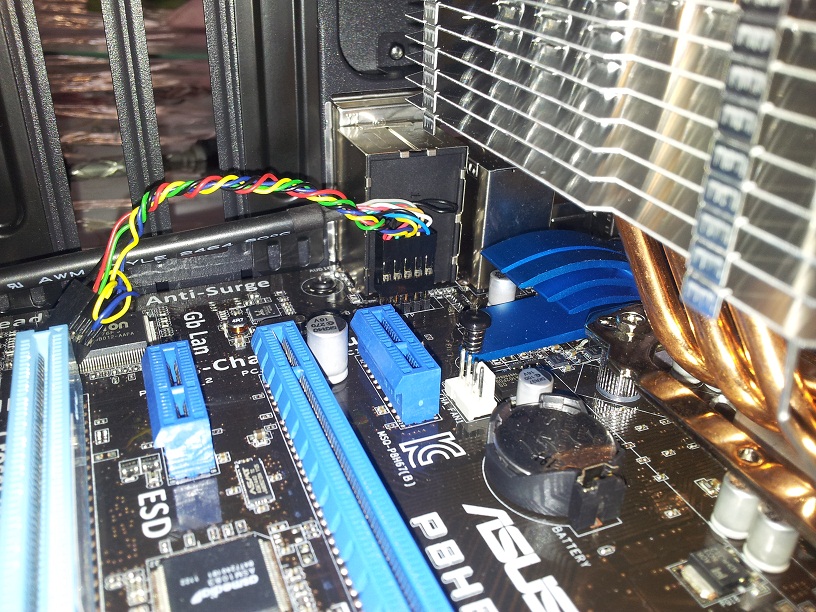 1. Ich habe bislang sowohl die USB- und Sound-Anschlüsse (an der Front) wie auch den CPU-Kühler (Thermalright Macho) an das Board angeschlossen. Während ich den Macho problemlos einstecken konnte, scheinen die anderen Kabel nicht ganz in die Anschlüsse auf dem Board reinzugehen. Sie passen zwar, man kann sie aber nicht vollständig runterdrücken. Ich weiss nicht, ob es so sein soll und traue mich nicht fester zu drücken, da ich gelesen habe, dass die Anschlüsse sehr empfindlich sein sollen.