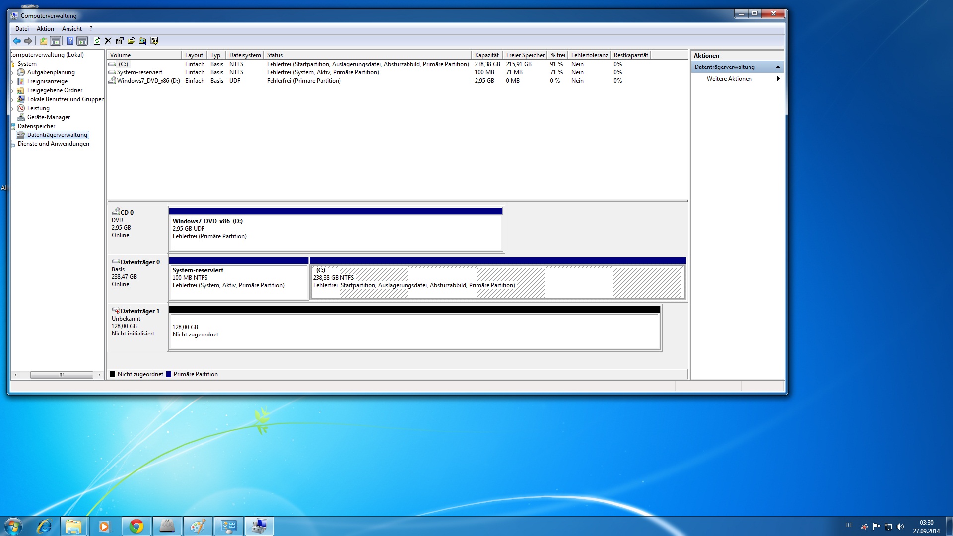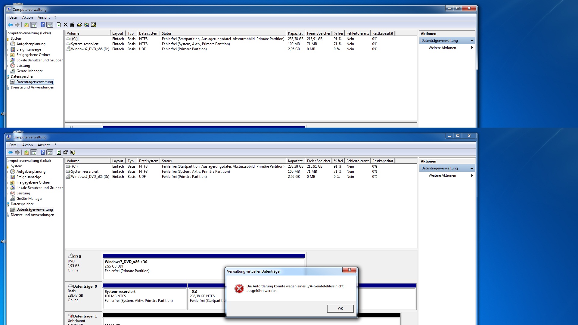 2. Die HDD wird nicht erkannt. Sie wird nicht bei Computer angezeigt, jedoch beim Gerätemanager und die Initialisierung schlägt auch fehl (bleibt so schwarz umrandet wenn man über verwaltung in die Datenträgerverwaltung reingeht).