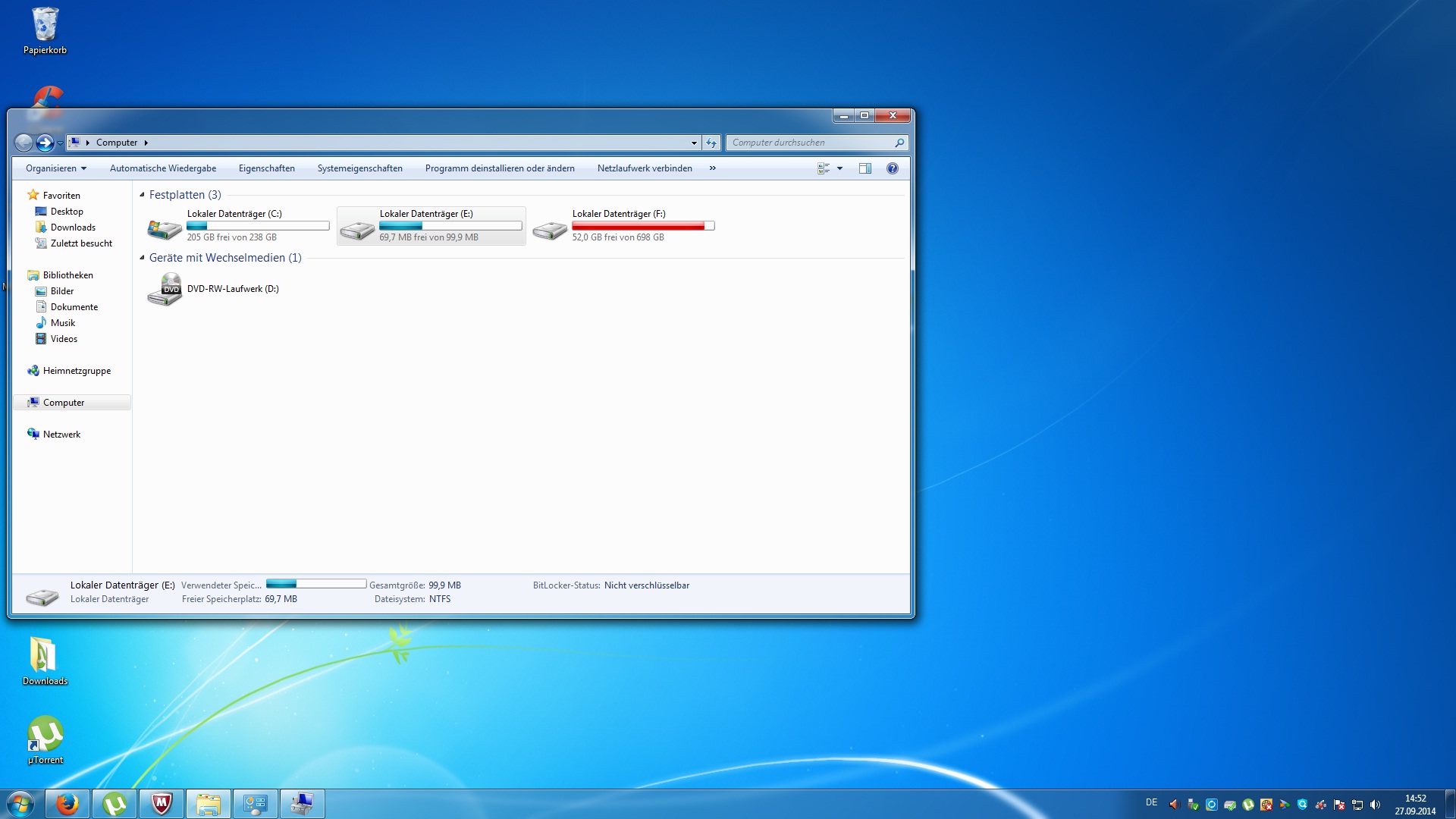 Die HDD soll, die E: sein obwohl sie nicht dran ist und hier i-wie zuwenig speicher hat + nur eine Datei zu