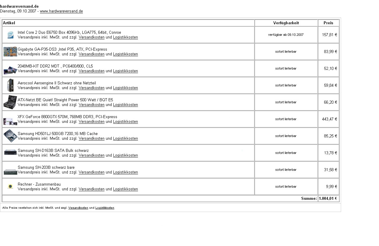Dann habe ich einen bei Hardwareversand zusammengestellt.