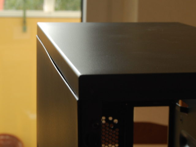 Gehäuse: Fractal Design Core 1000 – Sehr kompakt und gerade groß genug. So sehr mich das Design anzieht, so sehr schreckt mich der Schiß vor zu schlechter Qualität ab (dünnes Blech, dadurch Vibrationen, Betriebsgeräusche, Verstaubung). Alle besser verarbeiteten Kästen, die mir gefallen, sind deutlich größer und haben das NT unten, sodaß es nicht beim Entlüften hilft (z.B. FD Arc Mini, Nanoxia DS4, das ich schon wegen seiner grünen Power-LED toll finde).