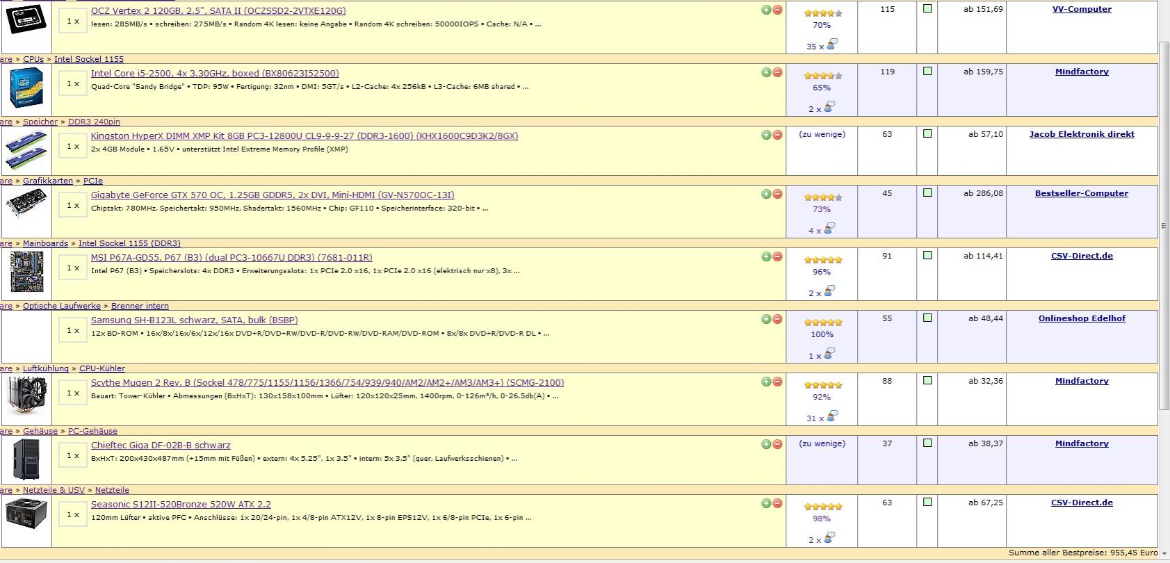 ich habe mir folgende Teile für meinen neuen PC zusammengesucht.