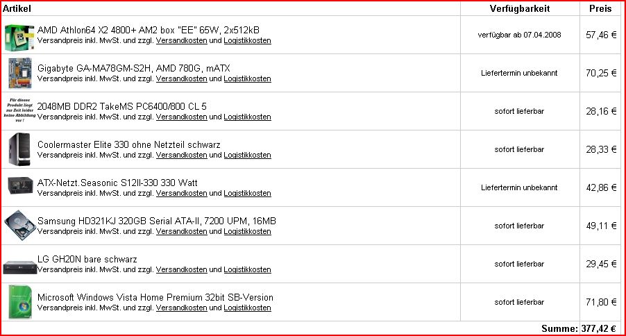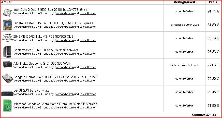 Die Sachen sollten bei anderen Shops auch lieferbar sein. Hab nur Hardwareversand.de genommen, weil die nen guten Konfigurator bei guten Preisen haben.