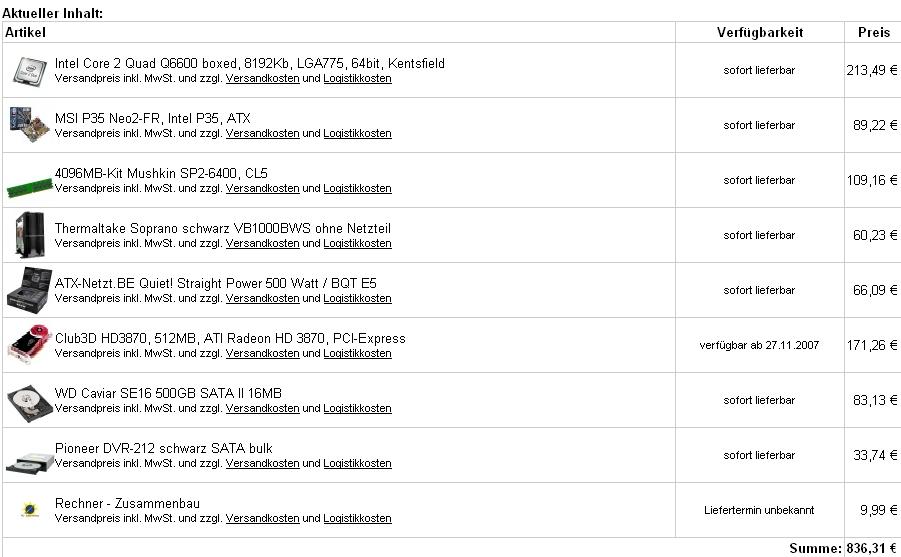 möchte bis spätestens weihnachten nen neuen rechner kaufen. preislich sollte es sich so zwischen 800 - maximal 900 € bewegen(ohne OS). der rechner soll hauptsächlich zum spielen genutzt werden. hab mir bei hwv schonmal was zusammengebastelt(siehe anhang). bin mir nur noch nicht bei allem ganz sicher. vl könnt ihr ja mal drüber schauen und mir tipps bzw. verbesserungsvorschläge geben...danke schonmal