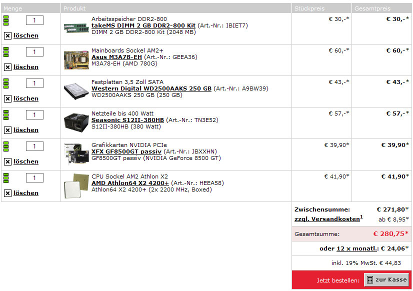Hab mir eure Ratschläge zu herzen genommen und nochmal scharf nachgerechnet und bin auf folgende Zusammentstellung gekommen jetzt. Was sagt ihr dazu: