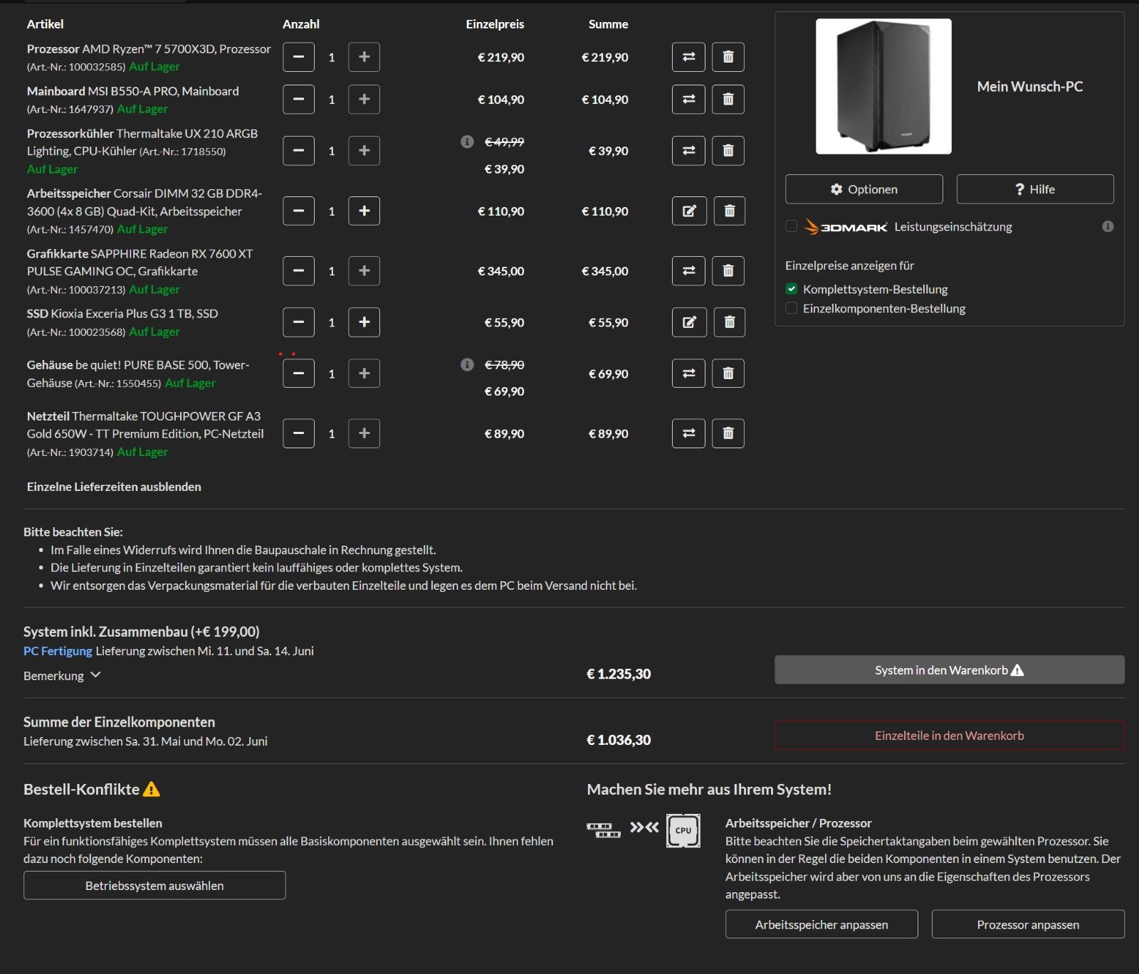 mein Sohn möchte sich folgendes zusammen stellen :