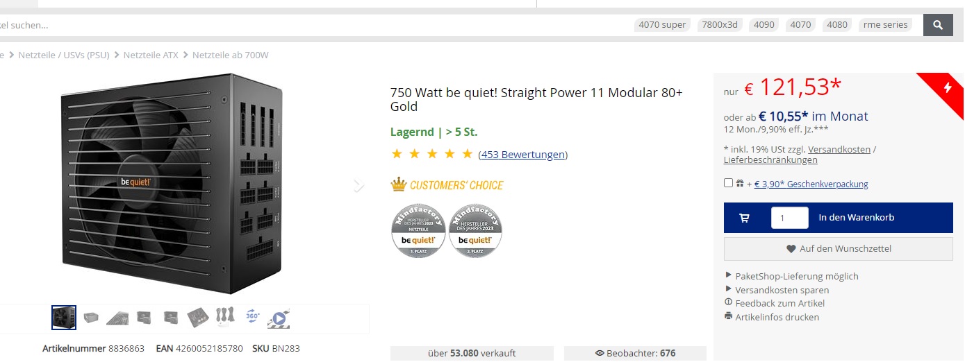 oh ist sogar günstiger, nice, 550W reichen echt aus? wow, dachte minimal 600W, aber okay gut zu wissen, cool master gibts leider nicht bei mindefactory, aber den Pure Power, soll ich den dann nehmen, oder lieber seperat und unbedingt den Cool Master besorgen ?Deathangel008 schrieb:da wäre das Pure Power 12 M 550W ne gute option. aktuell ist auch das bessere Cooler Master V750i preislich sehr attraktiv.